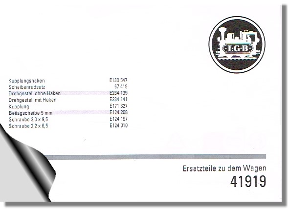 sowie der Hinweiszettel für die Ersatzteile. |